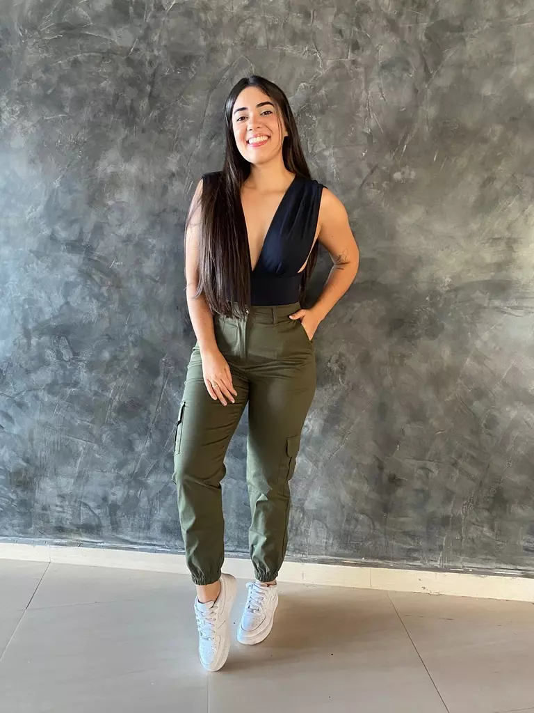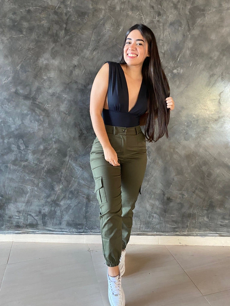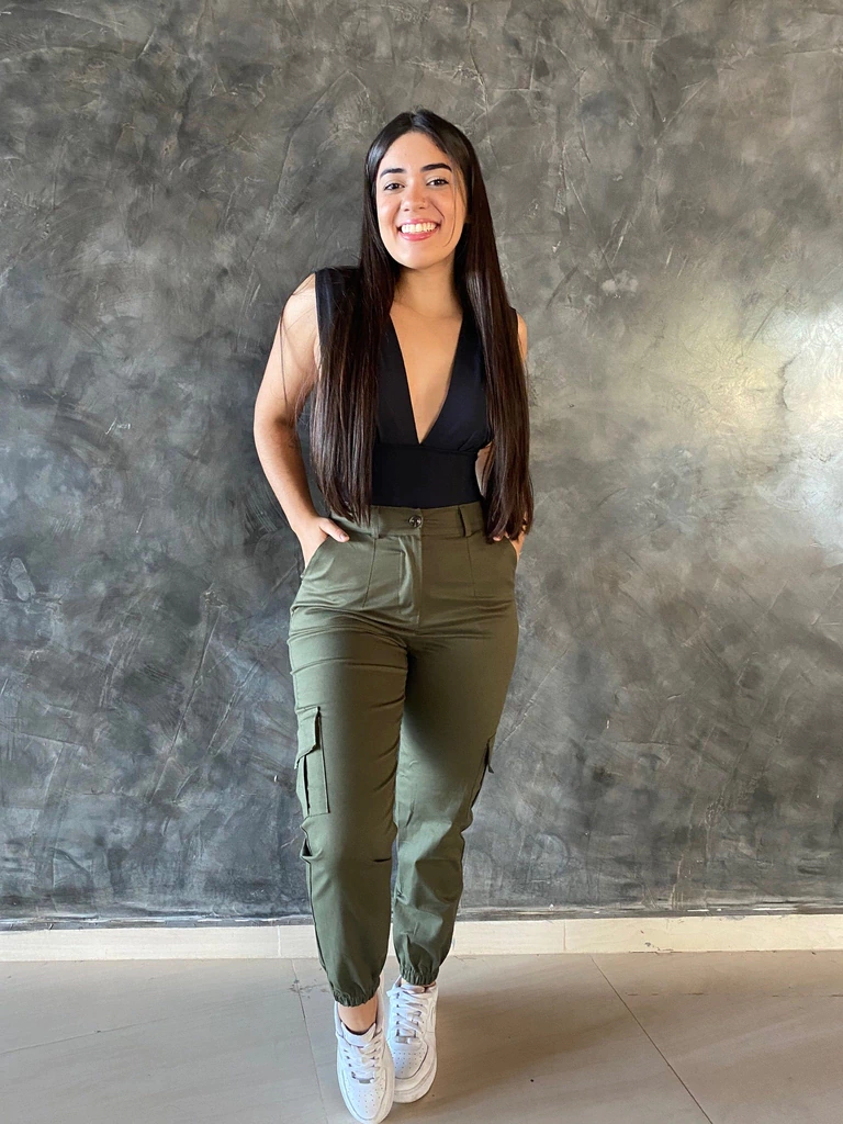 - Bolsos laterais que deixam a calça extremamente estilosa;